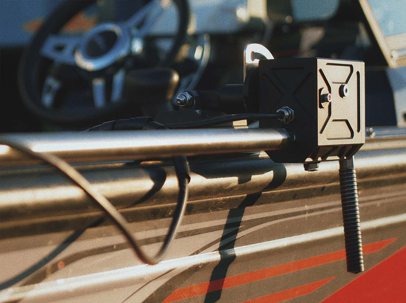 Устройство адаптировано под различные корпуса лодок посредством вариаций креплений и телескопической штанги.