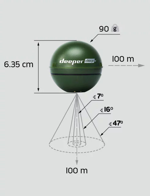 Deeper Smart Sonar CHIRP+ - это первый в мире забрасываемый эхолот с GPS и Wi-Fi, использующий технологию CHIRP. Три частоты сканирования, идеальная ясность и предельная точность показаний делают этот эхолот уникальным устройством для быстрого поиска мест обитания любимых видов рыбы, определения местонахождения хищников и косяков рыбы, а также ловли на критических глубинах. CHIRP+ обеспечивает стратегическое преимущество, позволяя ловить больше, быстрее и эффективнее.