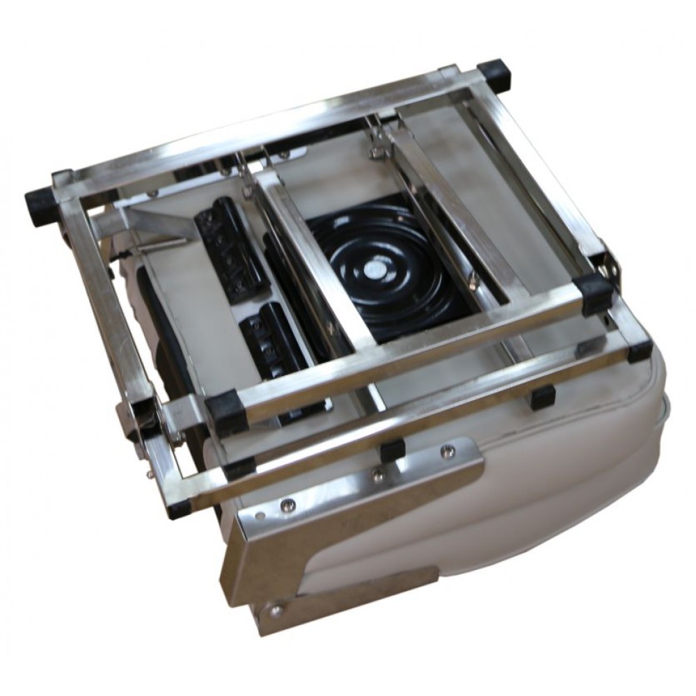 Устанавливается кресло в лодку очень легко! Кресло ставим в лодку, приподнимаем пластину, установленную на лодке, сдвигаем кресло и обратно. Устанавливаем фиксаторы. Кресло готово к эксплуатации.
