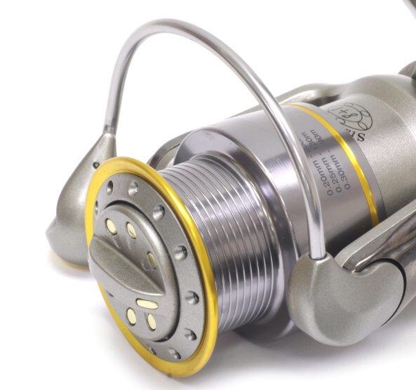 Бережно обращается с плетёной леской, благодаря эффективному покрытию из нитрида титана, которым защищен бортик облегчённой перфорированной шпули, а также ролик лесоукладывателя