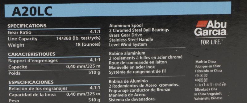 В серии катушек A20 LC конструкторы Abu Garcia воплотили свое представление о надежности. Предусмотренные в ней элементы обеспечивают долгую и безукоризненную работу всего механизма. К таким элементам с уверенностью можно отнести основной механизм из бронзу, выточенный с небольшими допусками и 2 хромированных шарикоподшипника из стали. Для создания дополнительного усилия при подмотке рукоять так же выполнена из нержавеющей стали. А повышенную комфортность при использовании во время троллинговой ловли и рыбалки на глубоководных водоемах гарантирует присутствие механического счетчика лески. И сигнализатор, оповещающий о малом остатке лески.