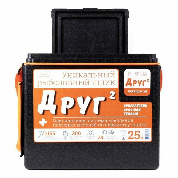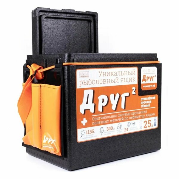 Рыболовный ящик «Друг 2+» предназначен для хранения и транспортировки снастей, а также хранения и транспортировки продуктов питания. Отлично подойдет в качестве сиденья, а если нужно, то и стола. А кроме этого, рыболовный ящик «Друг 2+» может сохранить жизнь, ведь он способен удержать на плаву человека в зимней экипировке.