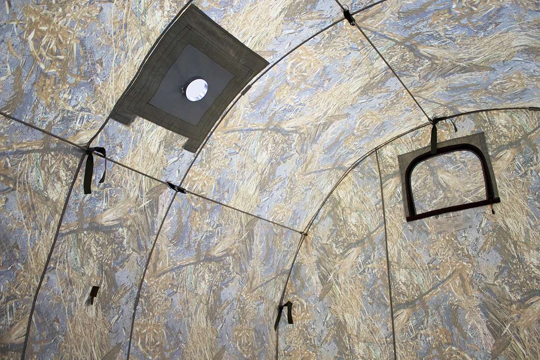 - Двумя дымоходами для установки печей. Два дымохода позволят установить печь для походной бани в каждой секции. Дымоход состоит из комбинированных материалов: термостойкая кремнеземная ткань и кольцо из жаропрочной нержавеющей стали, которое фиксирует трубу печи в неподвижном состоянии;