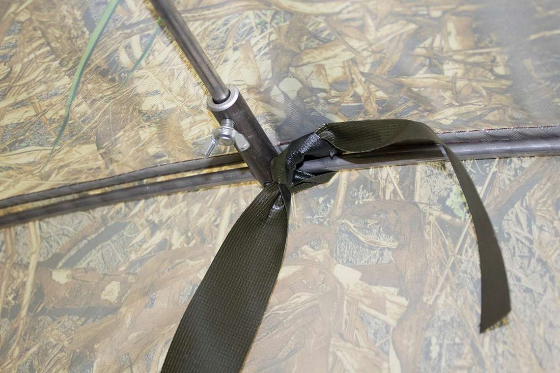 - Установите внешний тент на каркас. Закрепите тент липами и лентами ПВХ;