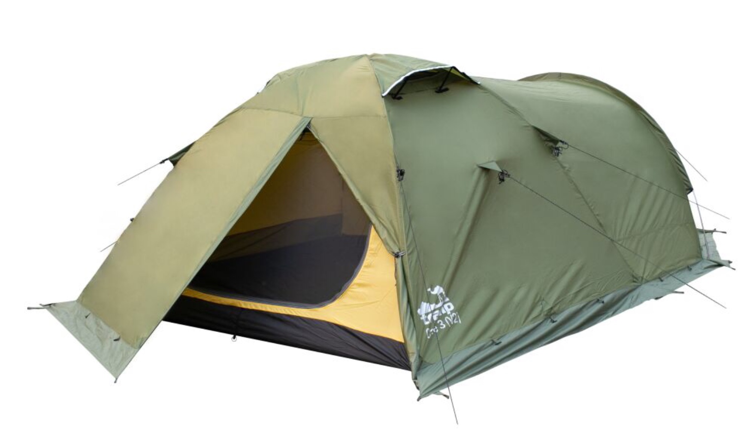 TRAMP CAVE 3 (V2) - трехместная палатка экспедиционного класса с 3 входами – 2 из тамбура, один с тыльной стороны, с большим тамбуром для складирования снаряжения или организации кухни.