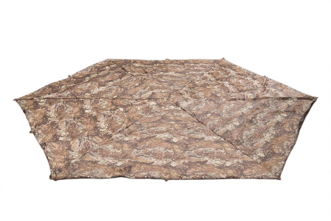 Утепленный пол в палатку «Гексагон» состоит из трех слоев ткани. В качестве утеплителя выступает фольгированный изолон. С двух сторон он покрывается прочной влагостойкой тканью Оксфорд 300 с PU пропиткой, выдерживающей 4000 мм водного столба.