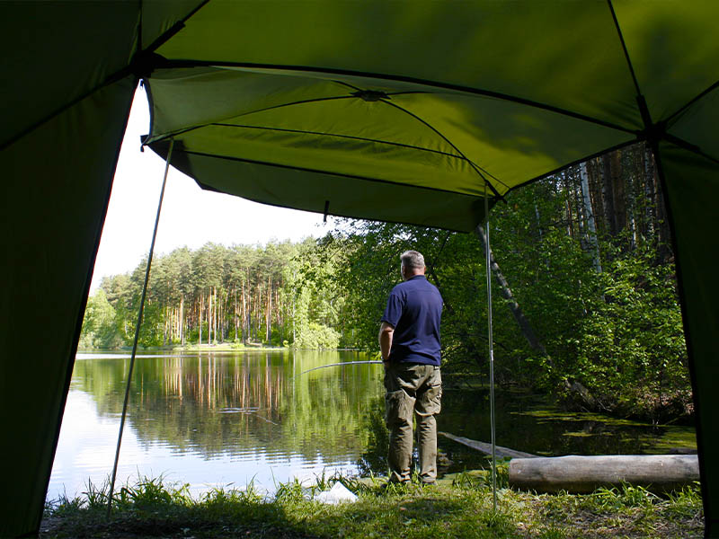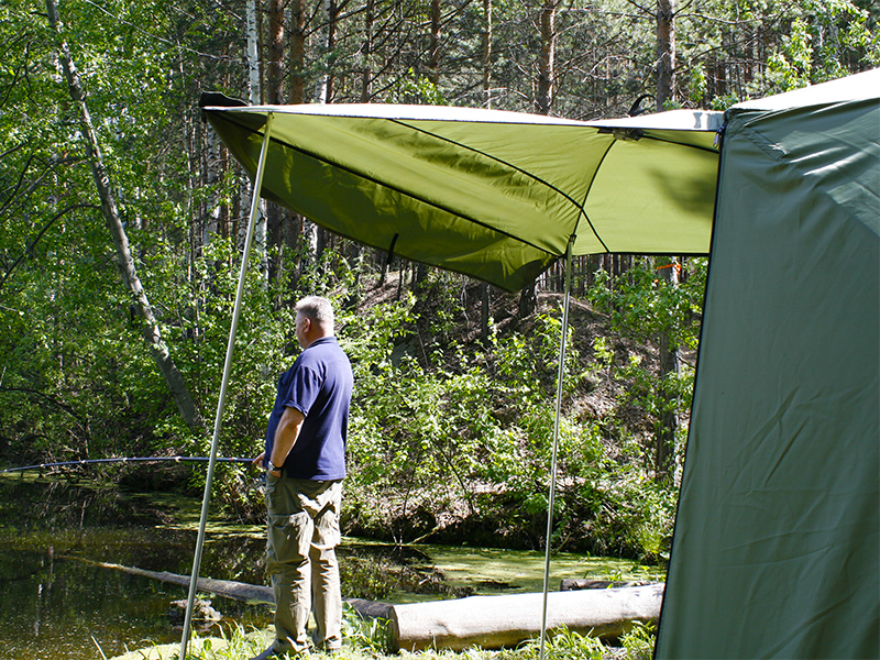 За 30 секунд, путем открытия двух молний, одна сторона палатки поднимается и становится крышей. Палатка превращается в укрытие для летней рыбалки или просто шатром. Установив палатку на берегу водоема, Вы находитесь в укрытии и в то же время имеете открытый доступ к воде и абсолютно свободно работаете со снастями. В то же время вещи, прикормка, насадка, снасти - всё находится рядом в укрытии.