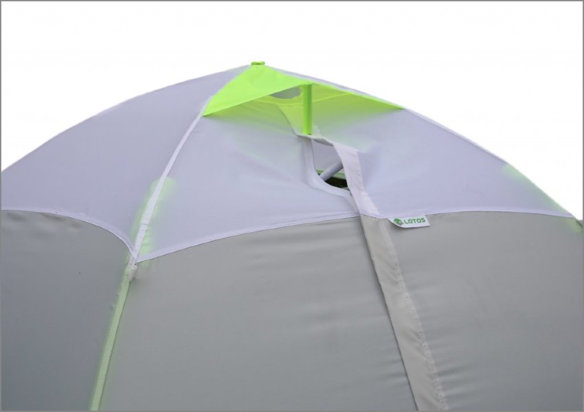 - С противоположной от дверного проема стороны есть небольшое окно, регулируемое планкой. Оно также открывается при помощи молнии No10 и вы сможете использовать Lotos 2 даже при большом морозе. В данной модели отсутствуют известные окна из пластика, ввиду их не морозоустойчивости.
