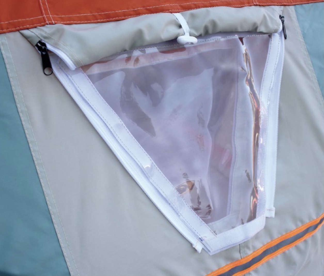 -Два больших обзорных окна со съемной пвх пленкой на наружном и внутреннем тенте закрывающиеся шторками на молнии.