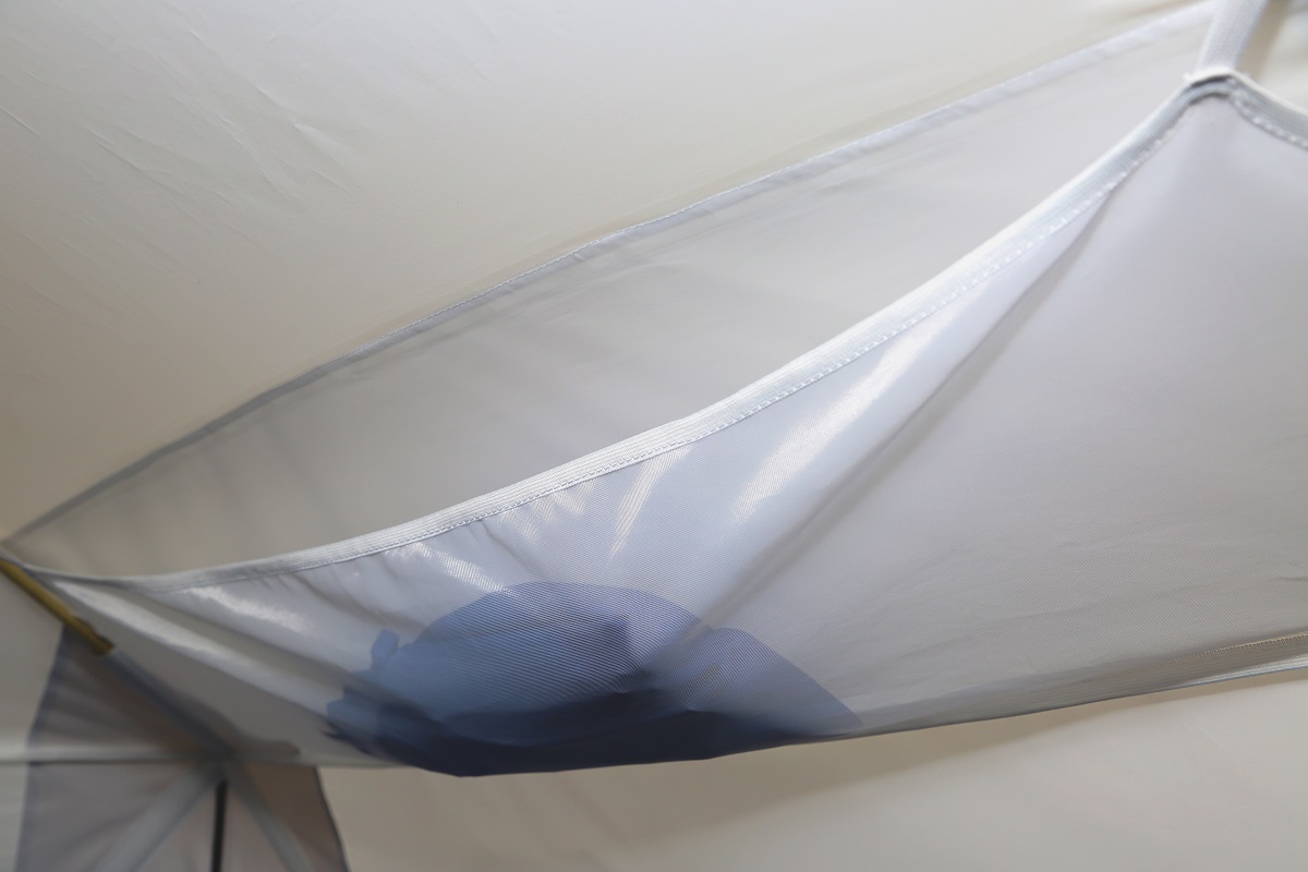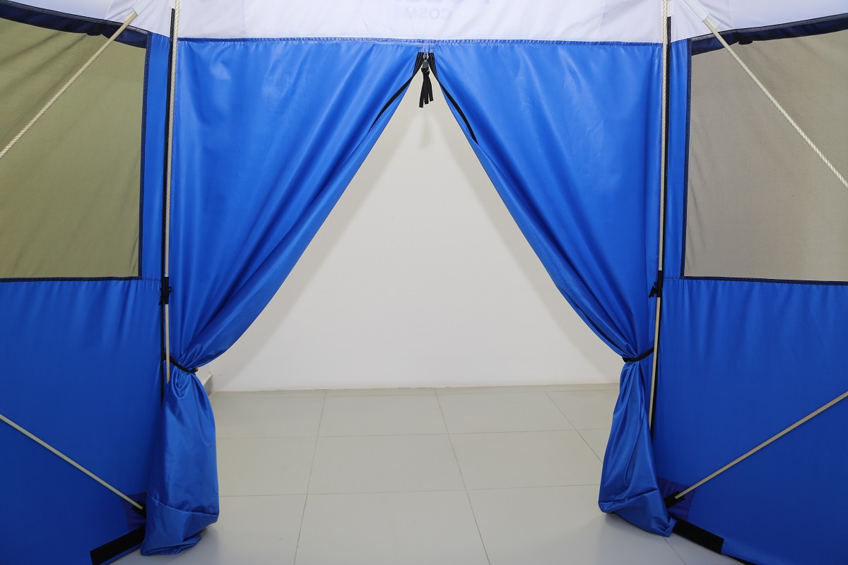- Вентиляционные окна на стене и двери палатки для проветривания во время ночлега или дождя.