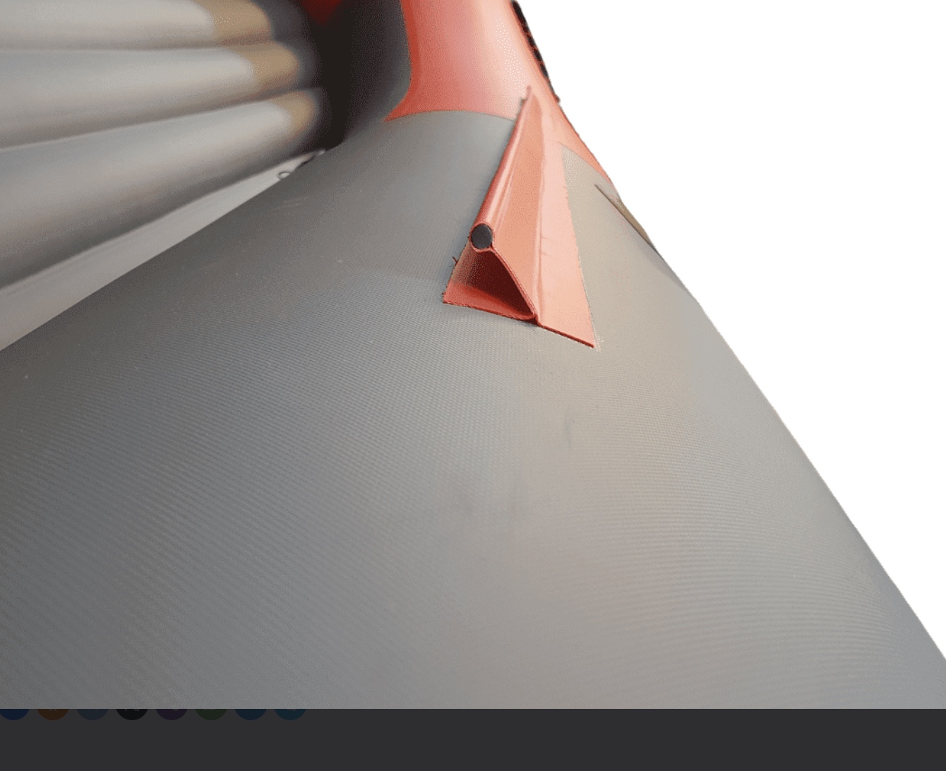 Привальный брус выполнен из декоративной ленты ПВХ, которая не увеличивает вес и объем свернутой лодки, но при этом эффективно защищает борта от повреждений.