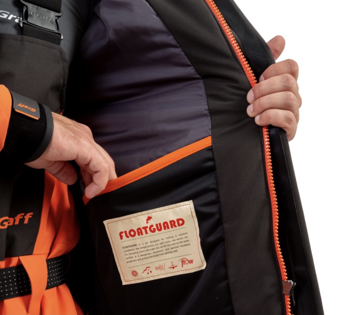FLOAT GUARD обладает уникальным выталкивающим свойством в воде, благодаря многослойному пенополиуретану, который дает возможность использования его в чрезвычайных ситуациях на воде. Структура пены - это миллионы пузырьков, которые соединяют свободные районы теплого воздуха для защиты от холода, уменьшая риск гипотермии. Кроме того, для повышения безопасности пользователей во время рыбалки, костюм имеет светоотражающие элементы. Сочетание светоотражающих элементов с красным цветом способствует лучшей видимости рыболова на снегу и в воде. При непредвиденном попадании в воду, костюм продержит вас на поверхности такое количество времени, которое необходимо для самостоятельного спасения или оказания вам помощи. В отличии от классических костюмов-поплавков, данный костюм является раздельным, что увеличивает комфортность его использования.
