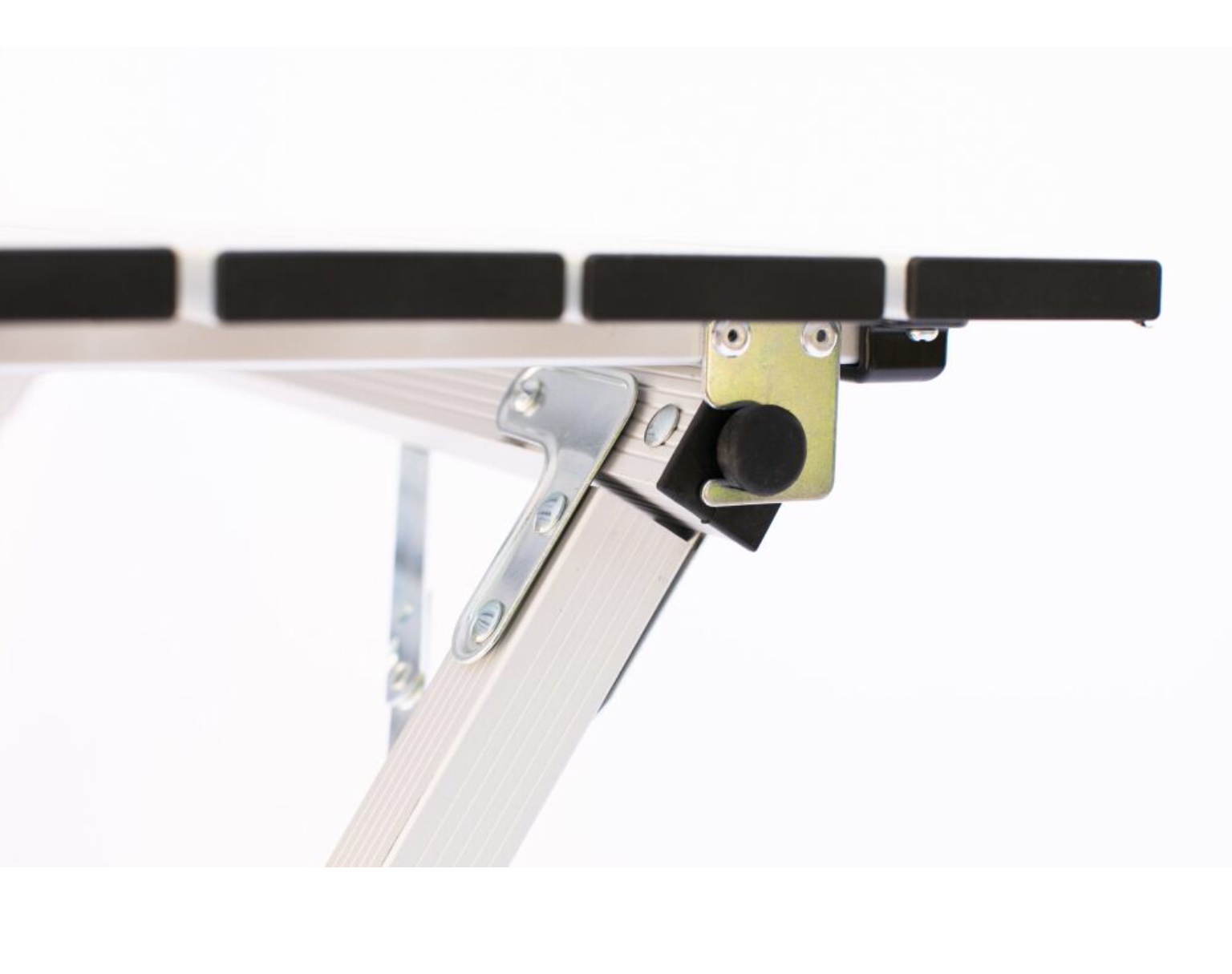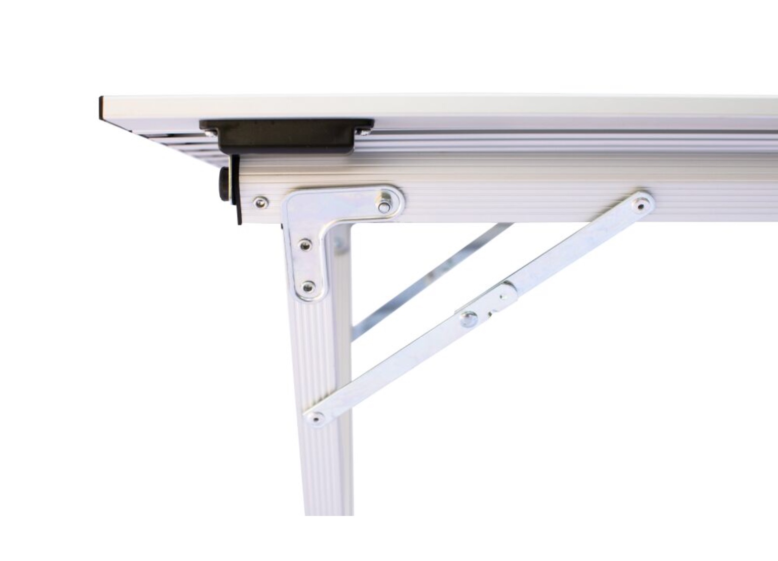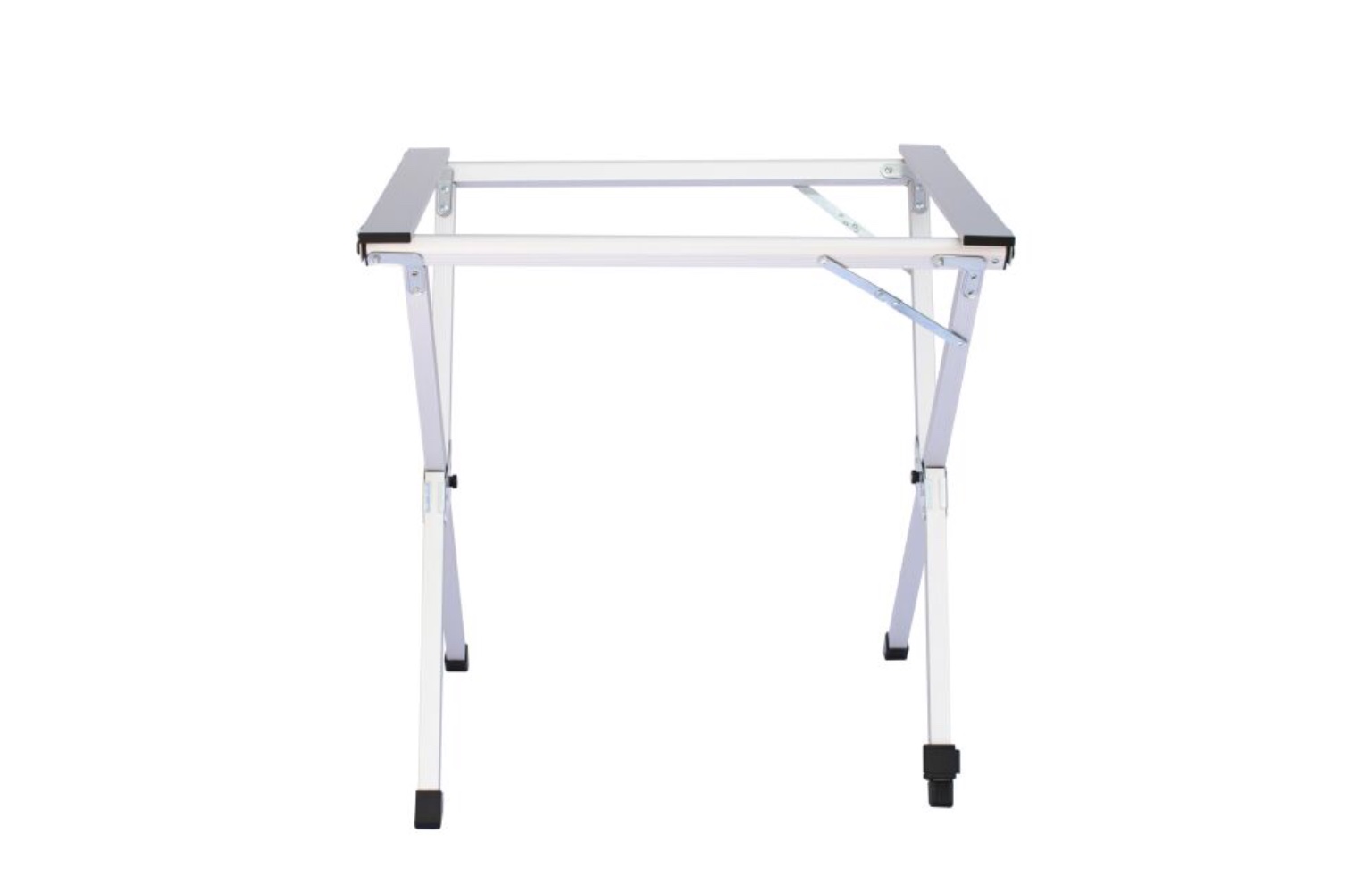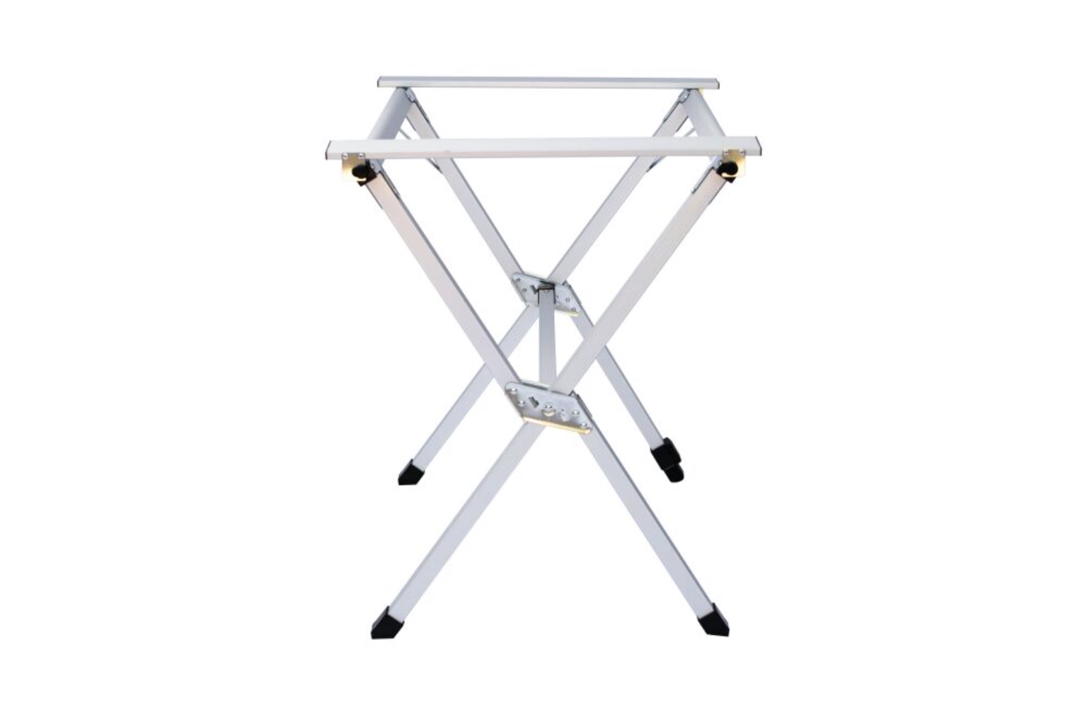 Складывающаяся «гармошкой» столешница и складной каркас столика выполнены из легкого и прочного алюминия .