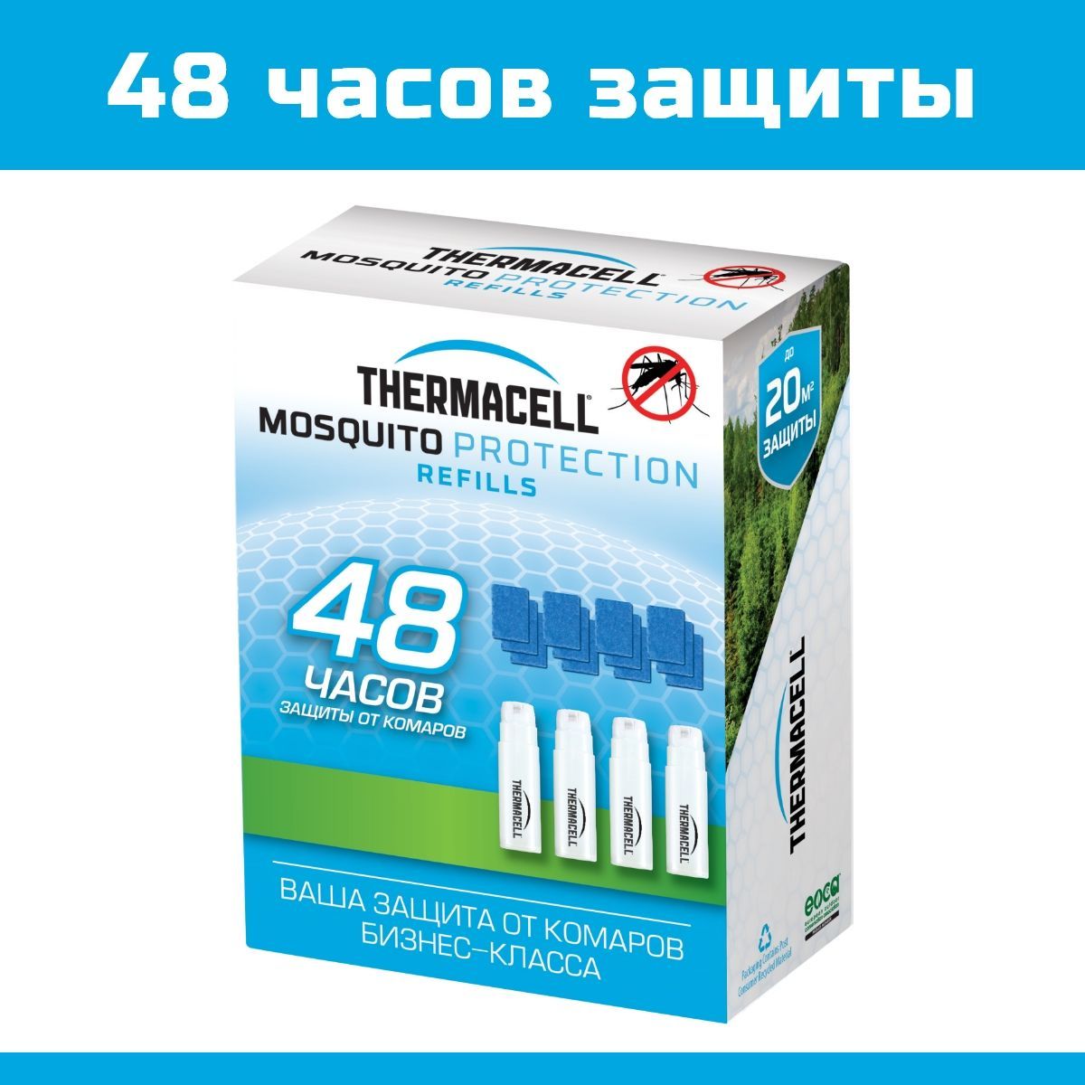 Оригинальные заправки от комаров Thermacell эффективно отпугивают комаров, создавая зону защиты в 20 кв.м. Идеально подходит для использования со всеми противомоскитными приборами Thermacell во время туристических походов, охоты, рыбалки, садоводства и внутри двора дачи или загородного дома.