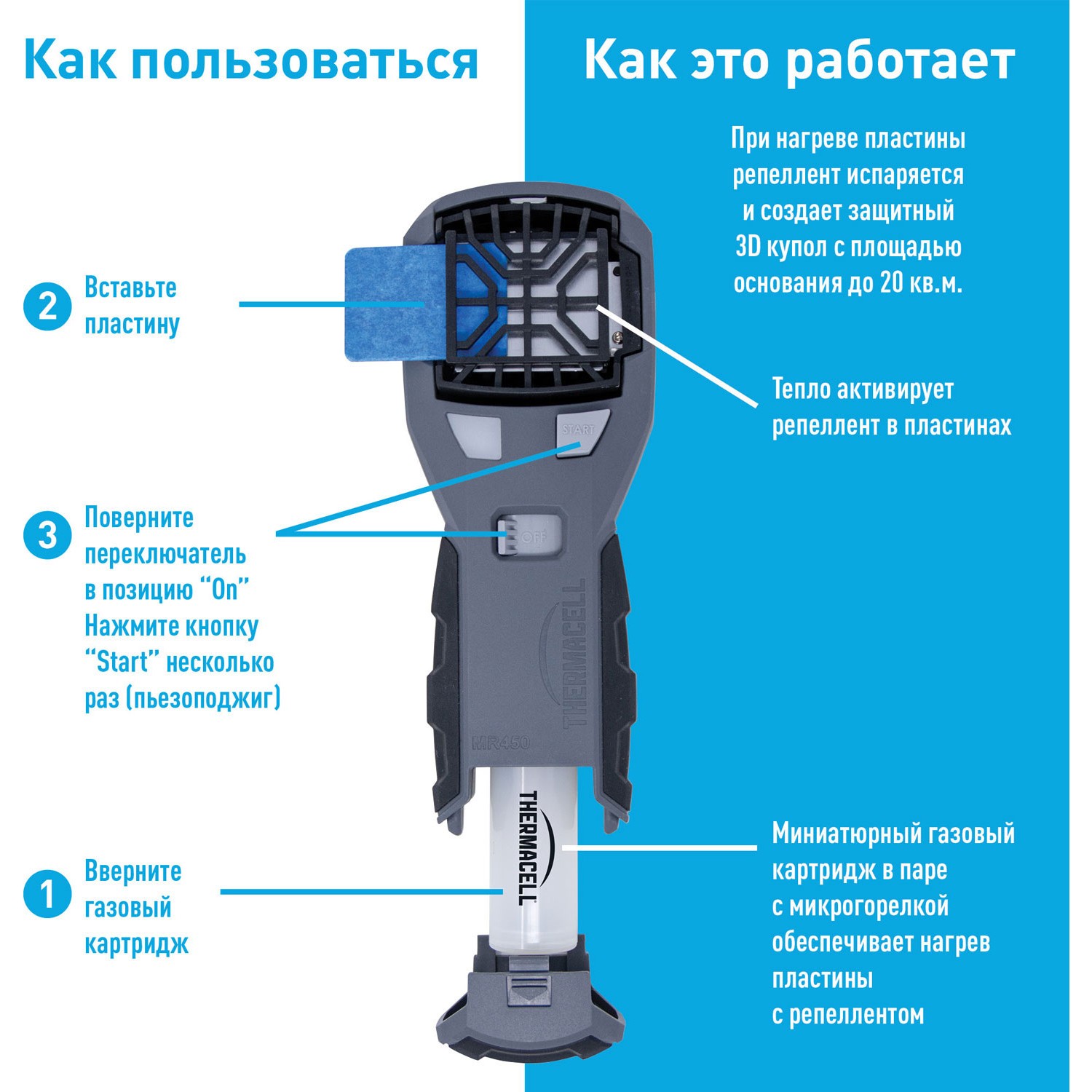 А в обращении модель настолько проста, что с ней справится даже ребенок. Кстати, для детей Thermacell безвреден – так же, как и для аллергиков.